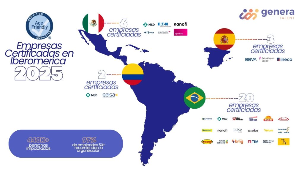 Tres organizaciones referentes en inclusión generacional, Genera Talent (España y México), Maturi (Brasil) y 101ideas (Colombia), unen fuerzas para luchar contra la discriminación por edad en el trabajo, impulsando en conjunto la certificación internacional Certified Age-Friendly Employer® (CAFE) del Age-Friendly Institute (Estados Unidos).